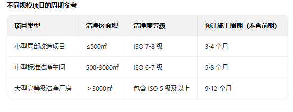 - 工程整体复杂程度:是否包含工艺管道(如气体、纯水)、动力系统(如 UPS、压缩空气)或防微振设施,会显著延长周期。若需同步建设这些配套系统,周期可能增加 3-6 个月。