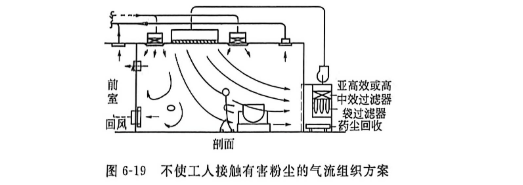图6-19是使操作工人尽量不接触有害粉尘的气流组织处理方法。