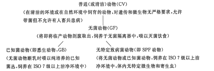 实验动物是一个笼统的称呼,它包括普通(或清洁)动物、已知菌动物、无特定致病菌动物和无菌动物,即:
