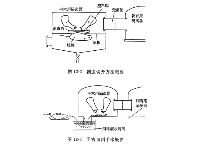 伺养隔离器一般和手术隔离器连起来使用,如图12-2和图12-3所示。