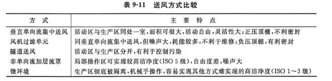 图9-5~图9-7是高级别电子工业洁净室应用垂直单向流集中送风的几种形式。