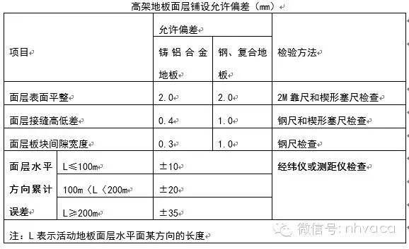 7、 高架地板面层铺设允许偏差,应符合下表的规定。